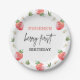 Red Strawberry Daisy Foliage Berry First Birthday Paper Plate