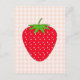 Nice bright red strawberry design, with a green top and a light pink gingham check pattern background.