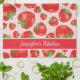 Red Strawberry Pattern With Custom Text Kitchen Towel