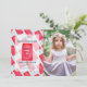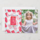 This cute girl's birthday party invitation features a light blue background with your photo and a pattern of red / dark pink strawberry popsicles. The reverse side features a dark pink background with sprinkles. Personalize for your needs. You can find more matching products at my store.