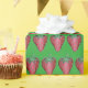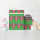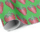 Wrapping paper features an original marker illustration of a row of delicious red strawberries, printed on a green background. Great for your favourite foodie!