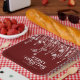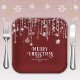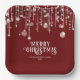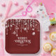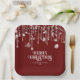 Red and white string lights sparkles Christmas party paper plates with a cute whimsical fun party invitation for a festive Holiday party.