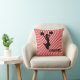 Fun cheerleader's throw pillow done in red and white stripes. Graphics of an black silhouette of a jumping cheerleader decorates the front. Black custom text on the back reads iCHEER and black text on the front is ready to personalize, with your favourite cheerleader's name. Makes a great gift idea.