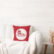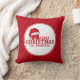 Add festive holiday style to your home with this personalized Merry Christmas throw pillow featuring a cheerful Santa hat design and classic red striped background. The decorative circular badge with customizable family name creates a cozy seasonal accent perfect for Christmas decorating.