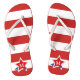 A bright and colourful red and white stripes pattern with a matching ribbon-embellished star graphic that contains your personalized monogram gets you ready for summer fun. These flip flops are a great choice for 4th of July parties and events or to show your patriotic pride all year. Personalize with your monogram.