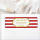 Étiquettes d'adresse de retour de Noël avec rayures rouges et blanches motif et détails or.