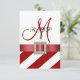 Red Stripes, Ribbon, Initial Wedding RSVP Card