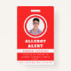Stay safe with this red food allergy alert badge featuring custom student photo & text. Easily add your own details by clicking on the "personalize this template" option.