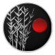 Bamboo trees and red sun in black zen circle hand-drawn with ink in traditional Japanese painting