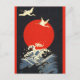 RED SUN ,JAPANESE FLYING CRANES,SEA WAVES IN BLACK POSTCARD
