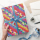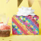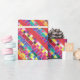red swatches, stripes, and colourful pixels wrapping paper