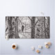 A black and white photograph of a hawk perched on a branch in a group of trees. Image Copyright ©2024 Kimberly J Tilley. zazzle.com/store/developingnature
