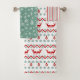Red Teal Christmas Reindeer Nordic Pattern Bath Towel Set