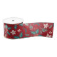 Red Teal Holly Berries Christmas Floral Pattern Satin Ribbon