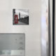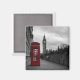 Souvenir photo magnet of a selective colour photo of a red telephone box in the city centre of London, UK with the Big Ben in the background on Remembrance Day.