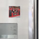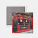 Square souvenir fridge magnet with the famous red pub with the hanging flowers baskets in Temple Bar district in Dublin, the capital of Ireland.