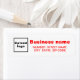 Return address label in red text that you can customize by uploading your business logo and typing your business name and address. Return address label for you to conveniently and quickly put your business name and address on envelopes or packages. You can also use it as a marketing material to advertise your business or to promote your brand to customers or clients. Customizable return address label that you can use to build brand name awareness. Please check the appearance after uploading logo and typing texts. If the appearance is pleasing to you, you can place your order now. If you need to resize or reposition the logo and texts, please adjust in the design tool. You can also change the background color, font color and font style in the design tool.