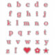 Gorgeous red lower case font typography monogram letters alphabet sticker pack for monogramming, personalizing, customizing, note writing, journals, notebooks, and more. This set also includes an exclamation point, heart, flower, and star.