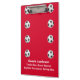 This clipboard is a unique and fun thank you gift for the soccer team coach! The solid red background with white lettering is very bright and eye catching. It is decorated with soccer balls. The back is red with soccer balls and the word "COACH". Your coach will love it! Sample text on front has room for 3 lines such as name, which can easily be modified or deleted. The word COACH on back can easily be modified or deleted. All Rights Reserved © 2014 Alan & Marcia Socolik.