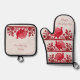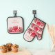 Red Thanksgiving Turkey Floral Oven Mitt & Pot Holder Set