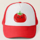 Cute Kawaii red tomato face vegetable drawing trucker hat. Funny cartoon food design for him or her.