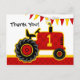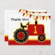 Cute tractor 1st birthday design featuring a red tractor with polka dots and big yellow number 1. Polka dot and stripe border and red and yellow flag banner. Customizable text for your own personal touch! Perfect for little farmers or anyone who loves tractors. PinkInkArt original!