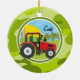 Red Tractor; bright green camo, camouflage Ceramic Ornament