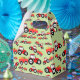 A cute illustration of a red tractor truck towing a wagon filled with fruit and vegetables. The farm fruit and vegetables on the trailer include watermelon, pumpkin, potatoes and corn. Perfect for boys and girls who love tractors, trucks, heavy machinery, farming or just love playing with toy trucks. Ideal birthday favour box. Matching birthday party invitation, decor and favours can be viewed in this design's collection.