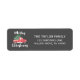 These red truck and tree grey Merry Christmas return address labels are perfect for a modern yet vintage style holiday card or invitation. The design features a classic old red pickup truck carrying a Christmas tree with the words "Merry Christmas" in a modern hand lettered font on a dark grey background.