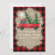 Red Truck Christmas Holiday Party Invitation with red buffalo plaid background. Perfect if you are planning for a fun Christmas party.