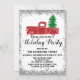 Red Truck Xmas Tree Christmas Holiday Party Silver Invitation