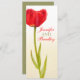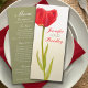 Double-sided single spring bright red painted tulip wedding reception dinner menu. Ideal for your wedding tables with red tulips or spring flowers Design and tulip fine art watercolor painting by Sarah Trett.