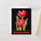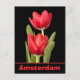 This postcard from Amsterdam, The Netherlands features two beautiful red tulips with green leaves over a black background. The location of 'Haarlem' can be easily changed to your requirements using the handy template function available on this postcard