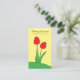 A modern business card showcasing an original illustration by Mango Moon Studio featuring two striking red tulips against a cheerful yellow background in the grass, creating a visual masterpiece that beautifully captures the spirit of your florist shop. Add your florist shop's name, tagline, hours, and contact details.