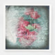 Red tulips floral bouquet with white ostrich feather on left with a mixture of ephemeral, newspaper print with a dark grunge border. Great for decoupaging smaller projects.