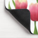 A set of red tulips flowers blooming on a white background with your own name in a scripted green font.