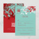 Red & Turquoise Bamboo Leaves Chinese Wedding RSVP Card