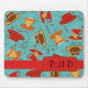 Red Turquoise Coffee Cups Pattern Monogram Mouse Pad