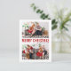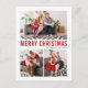 Red Typography Merry Christmas Three Photo Holiday Postcard