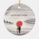 Red umbrella love couple postcard ceramic ornament