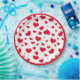 Red valentine hearts are scattered in a random pattern with a red ring for a frame. This simple romantic red and white design will make a unique decoration for your dining room or kitchen on valentine's day. Use the romantic red hearts for any romantic event or special day for a loved one.