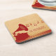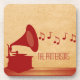 Quirky and unique Vintage Gramophone Coaster Set in dark red featuring a silhouette of an old-fashioned gramophone and a cascade of musical notes on a digital art rendered paper background. This chic cork coaster set will protect your furniture with vintage flair and is perfect for any music lover. Easy to customize, simply personalize with the text of your choosing. Click on the "Customize It" button to find additional personalization options.