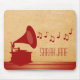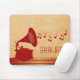 Quirky and unique Vintage Gramophone Mousepad in dark red featuring a silhouette of an old-fashioned gramophone and a cascade of musical notes on a digital art rendered paper background. This chic mousepad will add a vintage flair to your workspace and is perfect for any music lover. Easy to customize, simply personalize with the text of your choosing. Click on the "Customize It" button to find additional personalization options.
