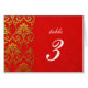 Red Vintage Swirl Damask Wedding Table Number
