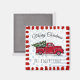 These magnets feature an antique vintage red truck hauling a Christmas tree with a rustic deep red striped border. Personalize it with your family name, and the "Merry Christmas" greeting can be changed to words of your choice in black script and modern typography on a white background with pale blue patterns of dots, checks, stripes and swirls. Designed by © Tim coffey.