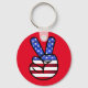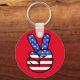 Red Vintage USA Flag Peace Sign keychain. A Red White and Blue USA flag design on a retro peace sign. You can customize your background colour, size and style.