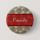 Elegant and modern Vintage Zinnia Button featuring a pretty textured floral background and an alluring red two-toned banner. Easy to customize, simply add the personalized text of your choosing in the text field provided. Click "Customize It" button to find additional personalization options.