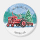 This magnet features a red vintage tractor pulling a Christmas tree in a wagon behind it with a winter scene including snow and trees behind it. Message reads "Williams Family Tree". Personalize with your own name, Below the tractor it reads, "Christmas 20xx". Please add the correct year when personalizing. Designed by world renowned artist Tim Coffey.
