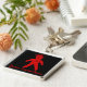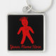 Red voodoo doll key chain with, "Your Name Here." Text and background colour can be customized..