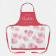 Custom kitchen apron feature watercolor floral pattern in pink and rose red with personalized name and text. Great personalized kitchen apron for women.